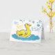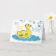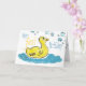 mignon petit canard nage à travers cette carte pour un PREMIER ANNIVERSAIRE SOUHAITEZ. phrase intérieure dit : (Une petite bougie, placée sur le gâteau...Un premier anniversaire souhaite faire! Joyeux anniversaire pour votre tout premier.) mais PEUT ÊTRE CHANGÉ! dessin à la main art texturé animé par kaps images