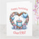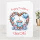 Cette carte de vœux présente une couronne aquarelle en osier et fleurs avec un gâteau et une bougie. La carte est personnalisable avec le nom de votre bébé,