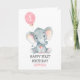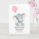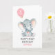 Carte Premier anniversaire de la fille à l'éléphant rose