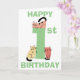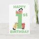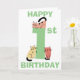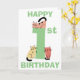 Jolie carte d'anniversaire amusante pour un premier (1er) anniversaire représentant un grand chiffre un de couleur verte. Un chaton gribouillé est assis sur le dessus du chiffre et deux autres chatons gribouillés sont assis à la base du chiffre, chaque chat est unique avec une couleur différente et dans une position différente. Au-dessus et en dessous des chats, on peut lire les mots Joyeux (en haut de la carte) et Anniversaire (en bas de la carte) en texte vert. À l'intérieur de la carte, vous trouverez encore plus de chats mignons avec un modèle pour ajouter votre message d'anniversaire et enfin un autre chat gribouillé au dos de la carte.