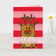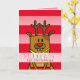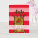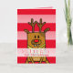 La première carte de Noël du Bébé rouge rose cerf mou. Boeuf mignon sur un arrière - plan rouge à rayures roses. Personnalisez la carte avec le nom de votre petite fille et l'année de naissance.