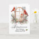 Une scène tranquille et gracieuse de cardinaux rouges à une fenêtre d'hiver avec des branches à feuillage persistant et des baies sèches. Créée pour un premier Noël sans votre femme, cette carte offre confort et paix avec un message sincère et sincère.