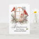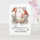 Un décor de souvenir de Noël chaleureux avec des cardinaux perchés sur une fenêtre d'hiver gelée encadrée de branches à feuillage persistant et de baies rouges. Créée pour quelqu'un qui fait face à son premier Noël sans son mari, cette carte offre le réconfort, la paix et un message de souvenir tendre.