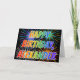 Ce design amusant, vibrant et multicolore de cartes de voeux d'anniversaire comprend le message "HAPPY BANTHDAY", et le prénom commun "ALEXANDER" avec les lettres ayant un spectre arc-en-ciel coloré comme motif de couleur dégradé. L'arrière - plan du devant présente également un motif coloré inspiré par les feux d'artifice. L'intérieur comporte un message de salutation personnalisé, ou peut-être pourrait-il être effacé et laissé vide si un message doit être écrit à la main à la place. Une carte de voeux comme celle-ci pourrait être une façon amusante de célébrer l'anniversaire de quelqu'un du nom d'Alexander. [~Z0000350]
