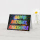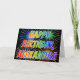 Cette carte de voeux d'anniversaire multicolore et amusant comprend le message "HAPPY BANTHDAY", et le prénom commun "ALEXANDRA" avec les lettres ayant un spectre arc-en-ciel coloré comme motif de couleur dégradé. L'arrière - plan du devant présente également un motif coloré inspiré par les feux d'artifice. L'intérieur comporte un message d'accueil personnalisé, ou pourrait être effacé et laissé vide si un message doit être écrit à la main à la place. Une carte de voeux comme celle-ci pourrait être une façon amusante de reconnaître l'anniversaire de quelqu'un nommé Alexandra. [~Z0000350]