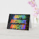 Cette carte de voeux d'anniversaire vibrante, multicolore et amusante présente le message "HAPPY BANTHDAY", et le prénom commun "ANGELA" avec les lettres ayant un spectre arc-en-ciel coloré comme motif de couleur dégradé. L'arrière - plan du devant présente également un motif coloré inspiré par l'apparition de feux d'artifice éclatants. L'intérieur comporte un message de salutation personnalisé, ou peut-être pourrait-il être effacé et laissé vide si un message doit être écrit à la main à la place. Une carte de voeux comme celle-ci pourrait être une façon amusante de reconnaître l'anniversaire de quelqu'un nommé Angela. [~Z0000350]