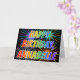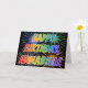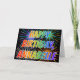 Ce design amusant, vibrant et multicolore de cartes de voeux d'anniversaire comprend le message "HAPPY BANTHDAY" et le prénom commun "ANNABELLE" avec les lettres ayant un spectre arc-en-ciel coloré comme motif de couleur dégradé. L'arrière - plan du devant présente également un motif coloré inspiré par l'allure d'un feu d'artifice festif. L'intérieur comporte un message de salutation customisé, ou peut-être pourrait-il être effacé et laissé vide si un message doit être écrit à la main à la place. Une telle carte de voeux pourrait être une façon amusante de reconnaître l'anniversaire de quelqu'un nommé Annabelle. [~Z0000350]