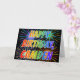 Ce design amusant, vibrant et multicolore de cartes de voeux d'anniversaire comprend le message "HAPPY BANTHDAY", et le prénom commun "CAMDEN" avec les lettres ayant un spectre arc-en-ciel coloré comme motif de couleur dégradé. L'arrière - plan du devant présente également un motif coloré inspiré par l'apparition de feux d'artifice éclatants. L'intérieur comporte un message de salutation customisé, ou peut-être pourrait-il être effacé et laissé vide si un message doit être écrit à la main à la place. Ce pourrait être une façon amusante de reconnaître l'anniversaire de quelqu'un nommé Camden. [~Z0000350]