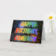 Cette carte de voeux d'anniversaire multicolore et amusant comprend le message "HAPPY BANTHDAY", et le prénom commun "CAMERON" avec les lettres ayant un spectre arc-en-ciel coloré comme motif de couleur dégradé. L'arrière - plan du devant présente également un motif coloré inspiré par les feux d'artifice. L'intérieur comporte un message de salutation personnalisable, ou peut-être peut-être être effacé et laissé vide si un message doit être écrit à la main à la place. Une carte de voeux comme celle-ci pourrait être une façon amusante d'envoyer un message d'anniversaire personnalisé à quelqu'un nommé Cameron. [~Z0000350]