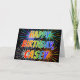 Cette carte de voeux d'anniversaire vibrante, multicolore et amusante comprend le message "HAPPY BANTHDAY" et le prénom commun "CASEY" avec les lettres ayant un spectre arc-en-ciel coloré comme motif de couleur dégradé. L'arrière - plan du devant présente également un motif coloré inspiré par l'apparition de feux d'artifice éclatants. L'intérieur comporte un message d'accueil personnalisé, ou pourrait être effacé et laissé vide si un message doit être écrit à la main à la place. Une carte de voeux d'anniversaire comme celle-ci pourrait être une façon amusante d'envoyer un message de voeux d'anniversaire personnalisable à quelqu'un nommé Casey. [~Z0000350]