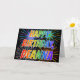 Cette carte de voeux d'anniversaire vibrante, multicolore et amusante présente le message "HAPPY BANTHDAY", et le prénom commun "DEANNA" avec les lettres ayant un spectre arc-en-ciel coloré comme motif de couleur dégradé. L'arrière - plan du front présente également un motif coloré inspiré par l'apparition de feux d'artifice festifs éclatants. L'intérieur comporte un message de salutation customisé, ou peut-être pourrait-il être effacé et laissé vide si un message doit être écrit à la main à la place. Cela pourrait être une façon amusante de reconnaître l'anniversaire de quelqu'un nommé Deanna. [~Z0000350]