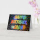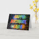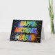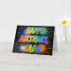 Cette carte de vœux d'anniversaire multicolore et amusante présente le message « JOYEUX ANNIVERSAIRE » et le prénom courant « JADA » avec des lettres ayant un motif de dégradé de couleurs spectrales arc-en-ciel. Le fond de la face avant présente également un motif coloré inspiré de feux d'artifice explosant. L'intérieur comporte un message de vœux personnalisable, ou pourrait éventuellement être effacé et laissé vide si un message doit être écrit à la main à la place. Une carte d'anniversaire comme celle-ci pourrait être amusante à offrir à une personne nommée Jada pour son anniversaire. [~Z0000350]