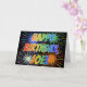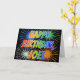 Cette carte de voeux d'anniversaire multicolore et amusant comprend le message "HAPPY BANTHDAY", et le prénom commun "JOEL" avec les lettres ayant un spectre arc-en-ciel coloré comme motif de couleur dégradé. L'arrière - plan du devant présente également un motif coloré inspiré par les feux d'artifice. L'intérieur comporte un message de salutation personnalisé, ou peut-être pourrait-il être effacé et laissé vide si un message doit être écrit à la main à la place. Une carte de voeux d'anniversaire comme celle-ci pourrait être une façon amusante de reconnaître l'anniversaire de quelqu'un nommé Joel. [~Z0000350]