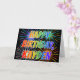 Cette carte de voeux d'anniversaire multicolore et amusant comprend le message "HAPPY BANTHDAY", et le prénom commun "KAYDEN" avec les lettres ayant un spectre arc-en-ciel coloré comme motif de couleur dégradé. L'arrière - plan du devant présente également un motif coloré inspiré par l'apparition de feux d'artifice éclatants. L'intérieur comporte un message de salutation personnalisé, ou peut-être pourrait-il être effacé et laissé vide si un message doit être écrit à la main à la place. Une telle carte de voeux pourrait être une façon amusante de célébrer l'anniversaire de quelqu'un du nom de Kayden. [~Z0000350]