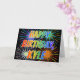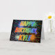 Ce design amusant, vibrant et multicolore de cartes de voeux d'anniversaire comprend le message "HAPPY BANTHDAY", et le prénom commun "KYLE" avec les lettres ayant un spectre arc-en-ciel coloré comme motif de couleur dégradé. L'arrière - plan du devant présente également un motif coloré inspiré par l'allure d'un feu d'artifice festif. L'intérieur comporte un message de salutation personnalisé, ou peut-être pourrait-il être effacé et laissé vide si un message doit être écrit à la main à la place. Une carte de voeux comme celle-ci pourrait être une façon amusante de reconnaître l'anniversaire de quelqu'un nommé Kyle. [~Z0000350]