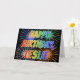 Cette carte de voeux d'anniversaire vibrante, multicolore et amusante comprend le message "HAPPY BANTHDAY", et le prénom commun "LESLIE" avec les lettres ayant un spectre arc-en-ciel coloré comme motif de couleur dégradé. L'arrière - plan du devant présente également un motif coloré inspiré par l'allure d'un feu d'artifice festif. L'intérieur comporte un message de salutation personnalisable, ou peut-être peut-être être effacé et laissé vide si un message doit être écrit à la main à la place. Une telle carte de voeux pourrait être une façon amusante de célébrer l'anniversaire de quelqu'un du nom de Leslie. [~Z0000350]