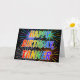 Cette carte de voeux d'anniversaire multicolore et amusant comprend le message "HAPPY BANTHDAY", et le prénom commun "TANNER" avec les lettres ayant un spectre arc-en-ciel coloré comme motif de couleur dégradé. L'arrière - plan du devant présente également un motif coloré inspiré par les feux d'artifice. L'intérieur comporte un message de salutation personnalisable, ou peut-être peut-être être effacé et laissé vide si un message doit être écrit à la main à la place. Une carte de voeux d'anniversaire comme celle-ci pourrait être une façon amusante d'envoyer un message de voeux d'anniversaire personnalisable à quelqu'un nommé Tanner. [~Z0000350]