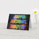 Cette carte de voeux d'anniversaire multicolore et amusant comprend le message "HAPPY BANTHDAY", et le prénom commun "TIMOTHY" avec les lettres ayant un spectre arc-en-ciel coloré comme motif de couleur dégradé. L'arrière - plan du devant présente également un motif coloré inspiré par l'apparition de feux d'artifice éclatants. L'intérieur comporte un message de salutation personnalisable, ou peut-être peut-être être effacé et laissé vide si un message doit être écrit à la main à la place. Une carte de voeux comme celle-ci pourrait être une façon amusante d'envoyer un message d'anniversaire personnalisé à quelqu'un nommé Timothy. [~Z0000350]