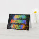 Cette carte de voeux d'anniversaire multicolore et amusant comprend le message "HAPPY BANTHDAY", et le prénom commun "TYLER" avec les lettres ayant un spectre arc-en-ciel coloré comme motif de couleur dégradé. L'arrière - plan du devant présente également un motif coloré inspiré par l'allure d'un feu d'artifice festif. L'intérieur comporte un message d'accueil personnalisé, ou pourrait être effacé et laissé vide si un message doit être écrit à la main à la place. Une carte de voeux comme celle-ci pourrait être une façon amusante d'envoyer un message d'anniversaire personnalisé à quelqu'un nommé Tyler. [~Z0000350]