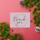 Carte Pressée Merci cadre rose