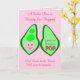 Cette belle carte de voeux présente une image graphique d'un pod vert de pois contenant 2 pois verts et un gros pois rose. Le grand pois rose a un petit visage mignon avec les yeux et une bouche. De l'autre côté de la pod de pois en texte rose foncé il dit "Baby Girl Ready to Pop". Le design est idéal pour un faire-part ou un baby shower de grossesse et comprend du texte personnalisé à l'intérieur pour votre propre message spécial. Il y a un groupe de petits pois roses dans l'arrière - plan.
