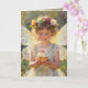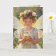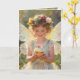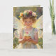 A sweet birthday card for a little girl. The front has an illustration of a pretty girl holding a cupcake with flowers in her hair, white wings and a vintage dress done in an impasto vintage style. The inside has a pretty poem for her.