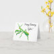 Cette carte de voeux présente une illustration peinte d'une mante en vert vif aux accents orange et est prête à être personnalisée avec votre propre message personnalisé sur le devant comme sur l'intérieur.