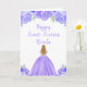 Cette carte d'anniversaire sweet sixteen présente de fausses fleurs florales violettes scintillantes et une belle princesse aux cheveux blonds et une robe élégante. C'est parfait pour une fête d'anniversaire sweet sixteen.