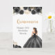 Cette carte d'anniversaire de quinceanera présente une belle princesse dans une robe de boule noire aux arrangements floraux. C'est parfait pour une fête d'anniversaire de quinceanera.