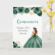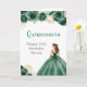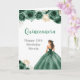 Cette carte d'anniversaire de quinceanera présente une belle princesse dans une robe de bal vert foncé avec des arrangements floraux. C'est parfait pour une fête d'anniversaire de quinceanera.