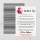 Bravo, ma fille ! Présentez votre style branché avec un style pop art audacieux. Le noir et blanc intemporel est accentué par des éclats de rouge pour le marketing clinquant et féminin. Motif demi-ton, illustrations modernes et plein de charme - parfait pour les distributeurs indépendants de rouge à lèvres, blogueurs de beauté, et tout ce qui est glamour! ・ Customisez-le ! Cliquez sur le bouton "Personnaliser" pour modifier les polices, la taille et la disposition. Vous pouvez déplacer (ou supprimer totalement) les illustrations sur le devant si vous le souhaitez. ・ Parcourez la collection moderne de bâton à lèvres Glamor ci-dessous pour tous les produits de coordination, y compris les cartes de visite, les cartes perforées de fidélité, les étiquettes, les en-têtes de lettres et plus encore!