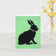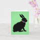 Ce carte pour notes a le profil latéral d'un lapin noir assis fait en silhouette portant des fleurs colorées autour du cou et ayant un oeil rose sur un arrière - plan vert.