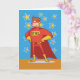 Envoyez cette carte à toute personne qui combat le cancer. Souhaitez-les bien avec ce super-héros avec une cape rouge disant bien se mettre sur sa poitrine.