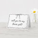 Invitation votre petite fille de fleurs pour faire partie de votre journée spéciale avec cette carte douce et charmante "Serez-vous ma fille de fleurs ?". Le design en noir et blanc dessiné à la main, avec un arc ludique et des bordures amusantes, apporte une touche simple mais moderne à vos plans mariages. Que votre style soit minimaliste, vintage ou classique, cette carte personnalisable ajoute un moment spécial à vos invitations de soirée nuptiale. Personnalisez l'intérieur avec un message sincère juste pour elle. Parfait pour la surprendre sous une douche nuptiale ou l'envoyer par la poste, cette carte lui fera certainement sentir vraiment spécial.