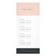 La conception élégante de cartes en rack colorblock affiche magnifiquement vos services, liste de prix ou informations professionnelles. La conception comprend quatre titres personnalisables et des champs de texte, ainsi que de l'espace pour les coordonnées de votre entreprise le long du bas, encadrés par de larges bandes de rose pâle et de charbon de bois en haut et en bas. Pour ajuster la disposition, entrez votre texte, puis utilisez la fonction Personnaliser pour modifier le positionnement et la taille des polices.