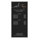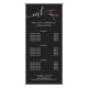 Tarif moderne et élégant pour coiffeurs avec faux ciseaux d'or rose en cuivre, arrière - plan noir et police de calligraphie élégante.