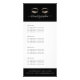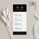 La conception élégante des cartes à bâti affiche magnifiquement vos services, votre liste de prix ou vos informations professionnelles. Design comporte une paire de faux cils et sourcils de feuille d'or sur un arrière - plan noir, avec votre nom et/ou nom d'entreprise en blanc écriture manuscrite. Comprend quatre en-têtes personnalisables et des champs de texte de corps, ainsi que de l'espace pour vos coordonnées professionnelles en bas. Parfait pour les salons, les maquilleurs, les esthéticiennes, les spécialistes du sourcil et du fouet. Pour ajuster la disposition, entrez votre texte, puis utilisez la fonction Personnaliser pour modifier le positionnement et la taille des polices.