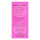 Une carte de support qui est sûre d'obtenir l'attention. A napperon-comme l'ornement dessine la visionneuse dans cette carte utilisant un type propre traitement qui suggère un environnement serein. Un rose lumineux est employé sur le dos avec l'ornement répété deux fois dans un léger transparent au-dessus de lui. Perfectionnez la carte promotionnelle pour un salon ou un spa, un thérapeute de massage ou un professionnel de santé, ou un magasin de détail se concentrant sur les cadeaux, l'habillement ou les accessoires. Disponible dans des couleurs alternatives avec les produits assortis.
