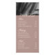 Présentez les services de votre studio de coiffure avec élégance et clarté grâce à notre belle Elegant Modern Green Brown Beautiful Model Photo Price List. Avec une photo modèle captivante sur un arrière - plan vert olive, cette liste de prix est le parfait mélange de sophistication et de fonctionnalité, assurant à vos clients un aperçu élégant et informatif de vos offres. Avec l'arrière - plan brun clair fournit une tonalité chaude et neutre qui complète la conception avant et assure que l'information est claire et facile à lire. Attirer l'attention avec un modèle frappant photo et un jeu de couleurs cohésif, assurant la liste de prix est à la fois attrayant et fonctionnel. Offrez aux clients un aperçu bien organisé de vos services et de vos prix, ce qui leur permet de prendre facilement des décisions éclairées.
