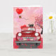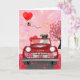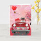 Carte Pug Chien Voiture avec coeurs Saint-Valentin