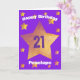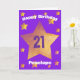 Faites briller leur 21e anniversaire avec cette belle carte à thème violet et or étoiles, personnalisée juste pour eux. Ajoutez leur nom et leur âge à l'avant pour une touche spéciale, et incluez un message personnalisé sincère à l'intérieur. L'arrière présente une finition violette riche et solide pour un détail final élégant. Parfait pour rendre leur 21e anniversaire encore plus lumineux ! Cela rendrait un garde de carte d'anniversaire personnalisé unique.