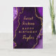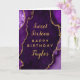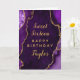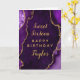 Cette carte d'anniversaire élégante et glamour peut être personnalisée avec un nom ou un titre comme fille, petite-fille, nièce, ami etc. Le design est composé d'un arrière - plan en marbre violet agate aux accents de parties scintillant en faux or. Le texte combine écriture manuscrite et polices sans serif modernes pour un look élégant et sophistiqué.