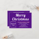 Joyeux Noël! Une des fêtes les plus célèbres de l'année. C'est aussi l'une des meilleures saisons pour annoncer votre entreprise ou pour promouvoir votre marque auprès de clients ou clients. Petite carte de voeux mauve à plat pour Noël que vous pouvez customiser en téléchargeant votre logo d'entreprise, en tapant votre nom d'entreprise, adresse, numéro de téléphone, e-mail et site Web. Customisez-le et utilisez-le pour accueillir vos clients ou clients ce Noël et comme matériel de marketing pour annoncer votre entreprise ou promouvoir votre marque. Vous pouvez également l'utiliser comme accessoire des matériaux d'emballage de vos produits. Carte de voeux personnalisable pour Noël que vous pouvez utiliser pour développer la sensibilisation de marque. Vous pouvez l'utiliser en décembre ou Noël en juillet. Veuillez vérifier l'apparence des côtés avant et arrière après avoir téléchargé le logo et tapé des textes. Si l'apparence vous plaît, vous pouvez passer votre commande maintenant. Si vous avez besoin de redimensionner et repositionner le logo et les textes pour les mettre sur cette carte ou sur la taille que vous choisirez, s'il vous plaît ajuster dans l'outil de conception. Vous pouvez également modifier la couleur arrière - plan, la couleur de police et le style de police dans l'outil de conception. Joyeux Noël! Je vous souhaite plus de ventes ce jour férié.