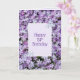 Le phlox mauve fleurit dans un jardin d'été avec un cadre lavande et Happy 74th Birthday texte.