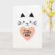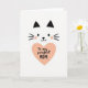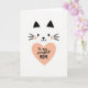 This greeting card shows a simple cat face at the top, with two black triangle ears and a rounded white head against a white background. The cat has tiny black dot eyes, a small curved smile, and three straight black whisker lines on each side. Soft peach circles on the cheeks give the cat a sweet, friendly expression. Below the face sits a large peach heart that takes up the center of the card. Inside the heart, the text reads “to my purrfect MOM” in black, with “to my purrfect” in a casual script and “MOM” in clear uppercase letters. The message is easy to spot and feels warm and personal, tying the cat theme to a loving note for a mom ❤️💌. Send it with a little extra sweetness—maybe even with some chocolates 🍫—and share your Valentine’s Day feelings with someone you care about.