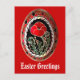 A pysanka is a Ukrainian Easter egg, decorated using wax and dye, ort of like batik. The word comes from the verb pysaty, to write, as the designs are not painted on, but written with beeswax, and then the egg dyed. This beautiful pysanka card makes a unique Easter greeting. Add your own text to personalize it.