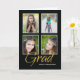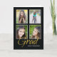 Ajoutez 4 photos à ce faire-part de graduation pour votre fille. Le arrière - plan noir lance le mot doré Grad avec son nom en blanc. Le mot grad chevauche les photos pour intégrer l'écriture et les images. Parfait pour votre fille, ou changez le texte intérieur pour n'importe qui !
