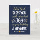 Souhaitez un joyeux anniversaire à quelqu'un avec cette carte unique de calligraphie et de lettrage, avec le message "Que Dieu vous bénisse de joie abondante pour votre anniversaire et toujours". Inclut des cœurs, des fleurs et des accents typographiques sur fond bleu foncé.