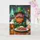 Une jolie carte St Patrick's Day avec un Leprechaun dans un pub à boire de la bière et manger du boeuf et du chou de maïs. L'intérieur de la carte peut être personnalisé.