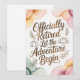Célébrez une retraite bien méritée avec cette élégante carte de vœux aquarelle présentant la citation manuscrite « Officiellement à la retraite – Que l'aventure commence ». Les textures aquarelles pastel créent un design sophistiqué et joyeux — parfait pour souhaiter à votre collègue, patron, ami ou membre de la famille tout le meilleur pour leur prochaine aventure. Un souvenir attentionné pour marquer le début d'un nouveau chapitre de la vie.
